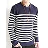 (オークランド) Oakland 厚手 パネルボーダー ニット セーター ゲージ 起毛 クルーネック 編み 防寒 メンズ ネイビー×ホワイト Mサイズ