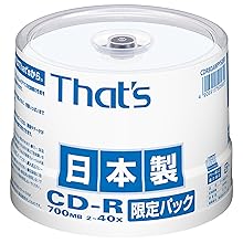 ■太陽誘電製 That’s CD-Rデータ用 40倍速700MB 盤面アクアホワイト プリンタブル内周印字有り 限定パック CDR80AWPY50BR